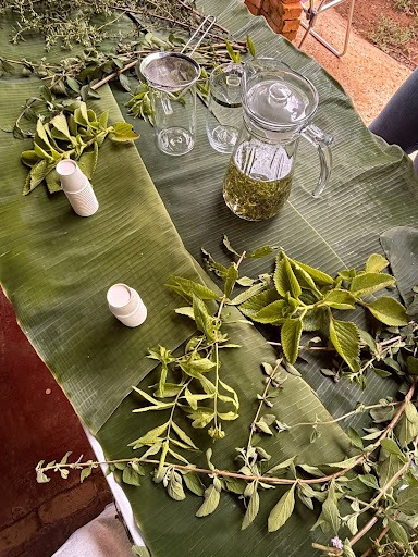 No local, o alecrim do campo foi usado para energizar os participantes antes da caminhada de reconhecimento do espaço.